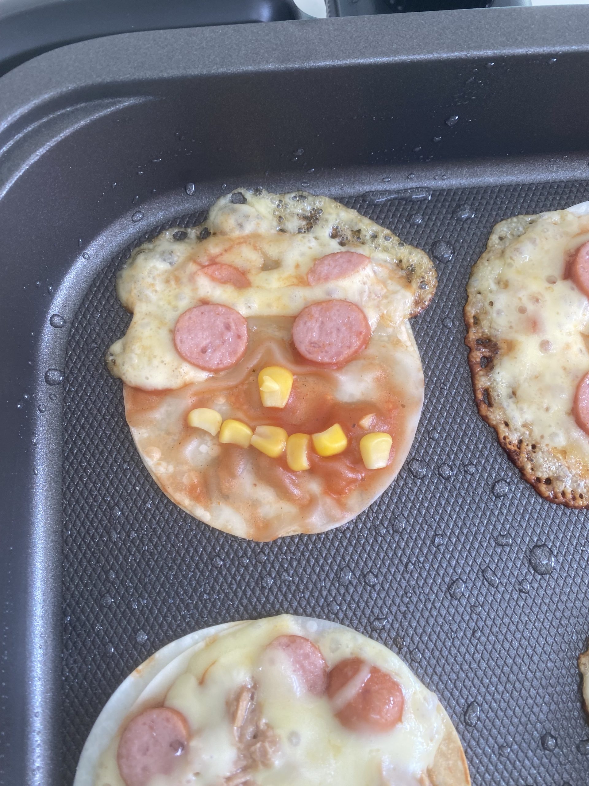 今回のメニューは“餃子ピザ”と“ホットケーキ”です。