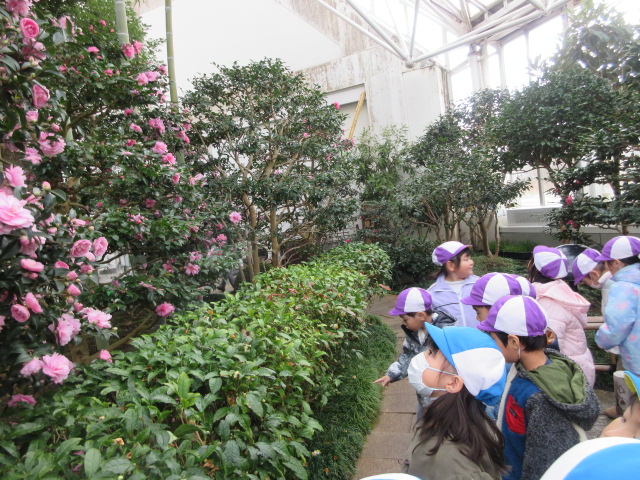 「かわいい~ピンクのお花が咲いてるね~」と興味津々。