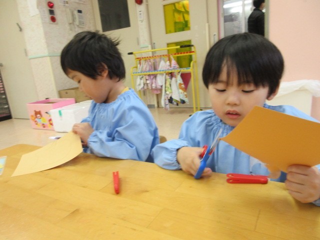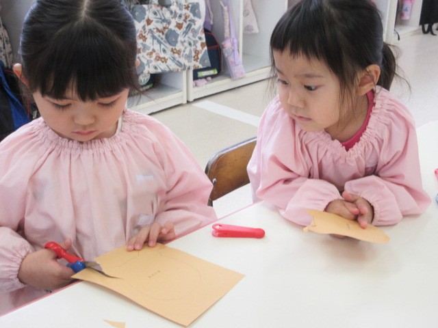 「ハサミはちょっと難しいな・・・」と言いながらも最後まで頑張って切る姿も。