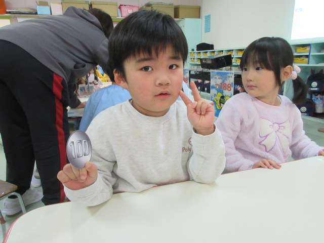 ご褒美バッヂをもらって、また頑張ろう!と気合が入る年長さんでした。