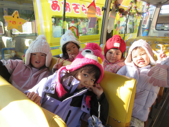 週に2回、幼稚園のお友達と一緒にバスに乗って登園します。