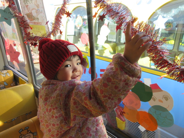 最近は、園バスに乗るたびに「バスにも飾ったらもっとクリスマスになるよ!」