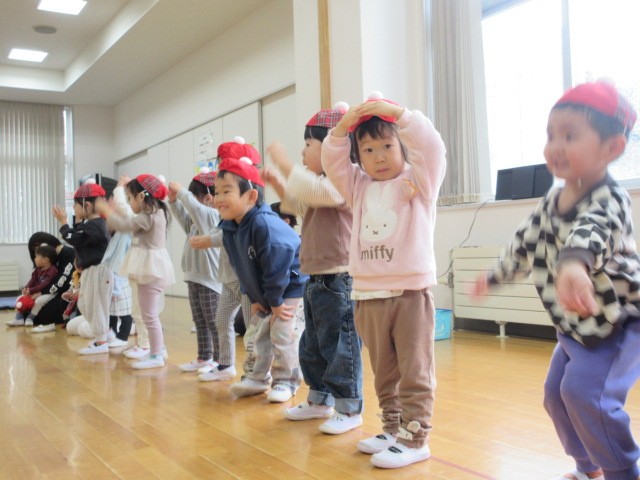 12月になりました。 子どもたちも白い息を吐きながら登園してくる姿が見られ、冬の訪れを感じます。 毎日寒そうにしながらも「今日は何するの?」とニコニコ笑顔。 季節の変化を楽しみながら、12月の行事をみんなで楽しんでいきたいと思います。 そして1日にのぞみコミセンで行われたたまご組さんのミニミニ発表会の様子をお届けします♪ いつもとは違う場…