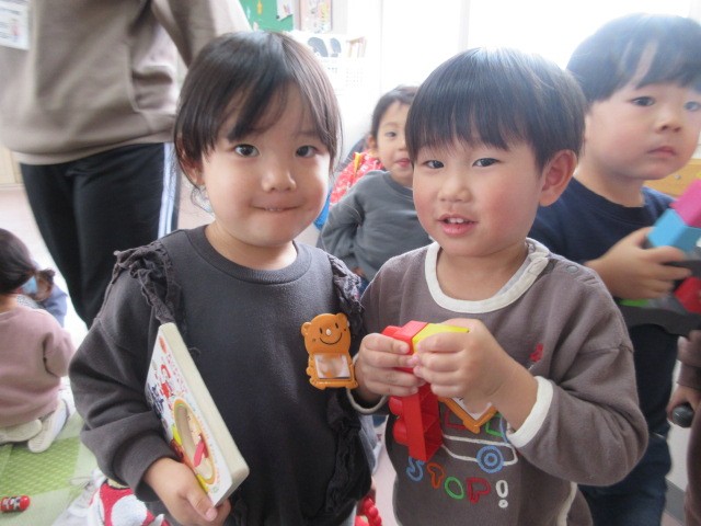 午前中の保育ですが一日一日と友だちが近くにいることを意識し始め、先生を介して遊びが展開しゆっくりゆっくり集団に慣れていきます。