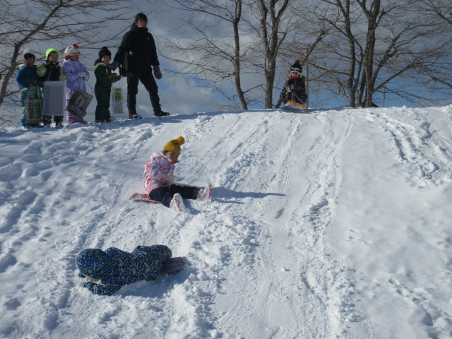 “手作りそり”を持って年中さんがすこやか公園へお出掛けしました。