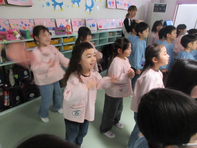 先生の真似をしてジャンプしたり、手をたたいたり♬